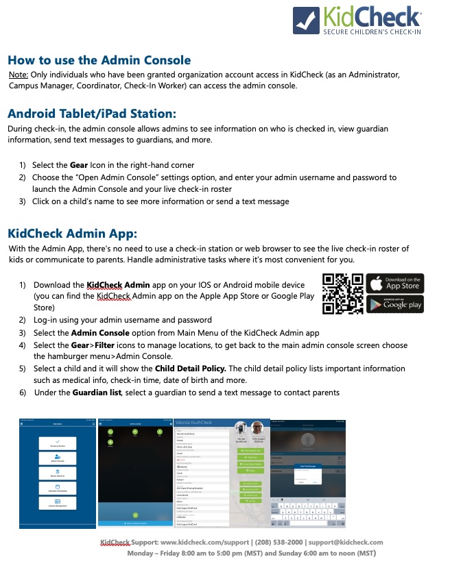 A one-page PDF guide that explains how to use the admin console on Android/iPad Stations and on the App.