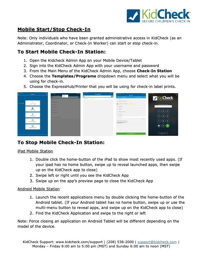A one-page PDF guide that walks volunteers/employees through starting & stopping check-in using Mobile Devices.