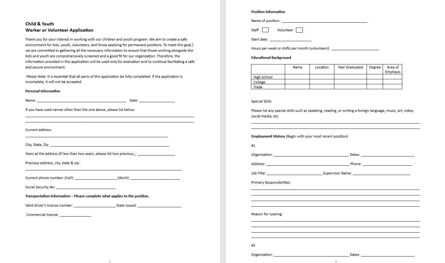 This 5 page sample application is easily customizable to meet your organization’s needs. It is intended for informational purposes and not meant to provide legal or professional advice. We encourage you to consult your legal counsel or other expert specialists for a professional opinion about your organization’s needs.