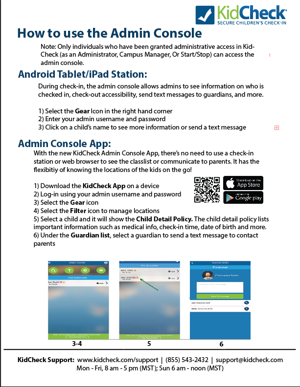 A one-page PDF guide that explains how to use the admin console on Android/iPad Stations and on the App.