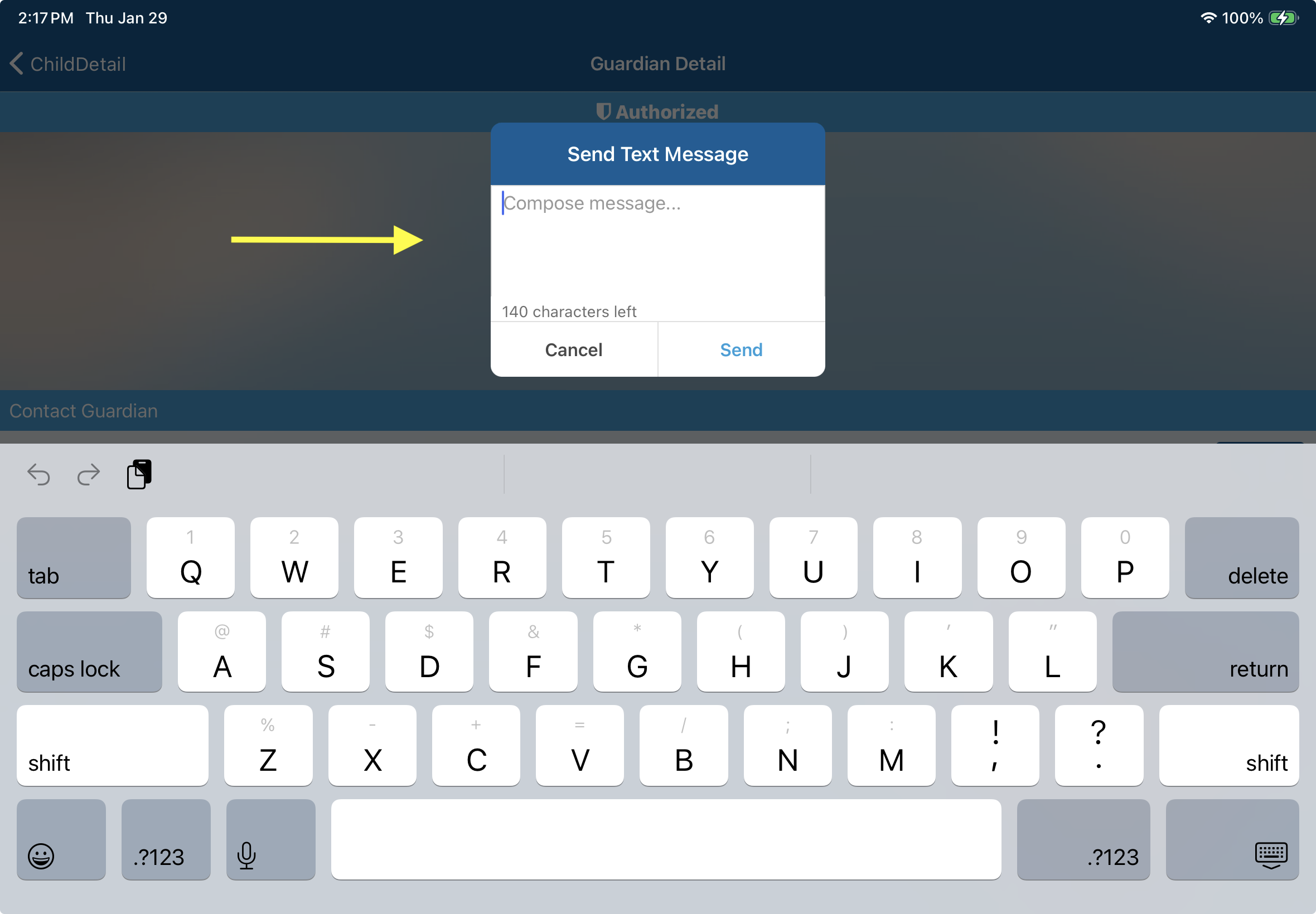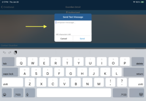 - Send Emergency Text to Guardian - Select a child → choose a guardian → tap Text → enter your message → tap Send.