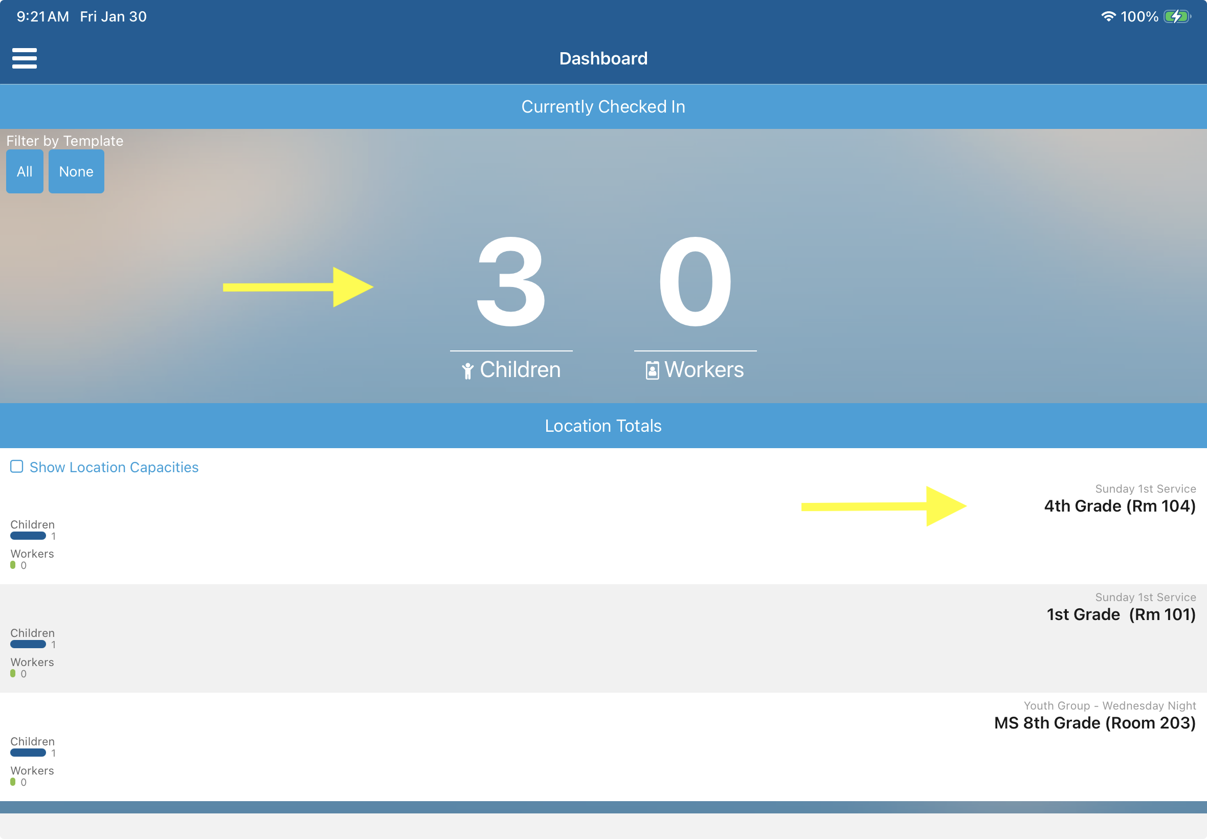 Access Check-In Counts from the Dashboard