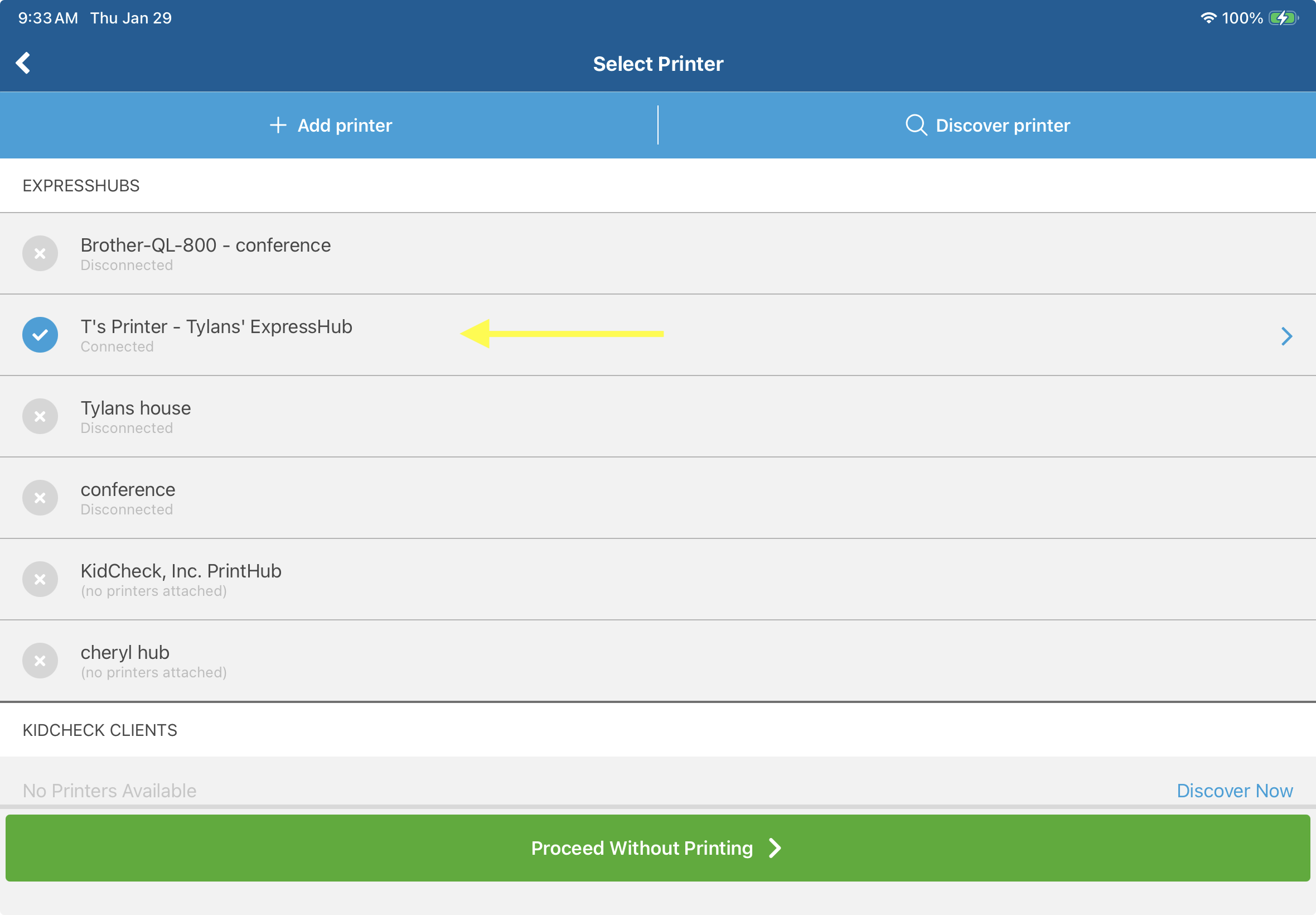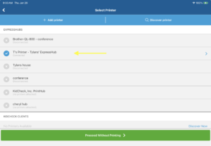 - Select the ExpressHub/Printer that you will be using for mobile check-in.
