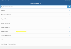 - Select the desired template or program to start mobile check-in.
