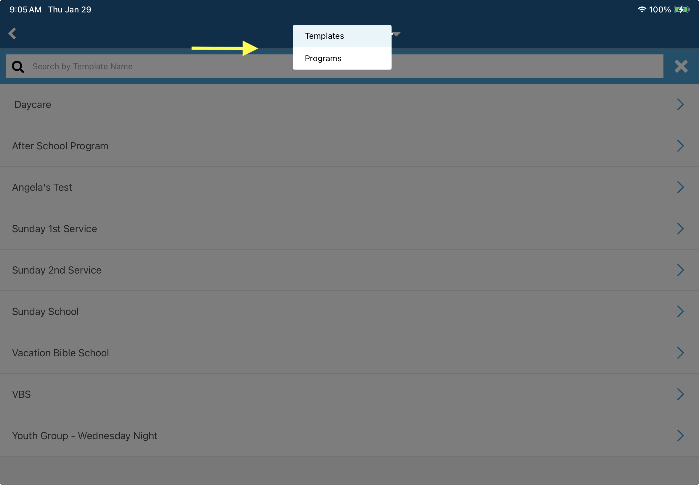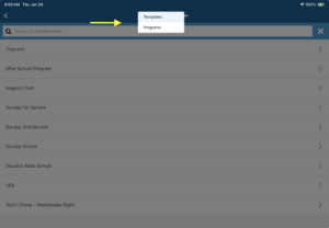 - At the top of the screen, select Templates or Programs from the dropdown.