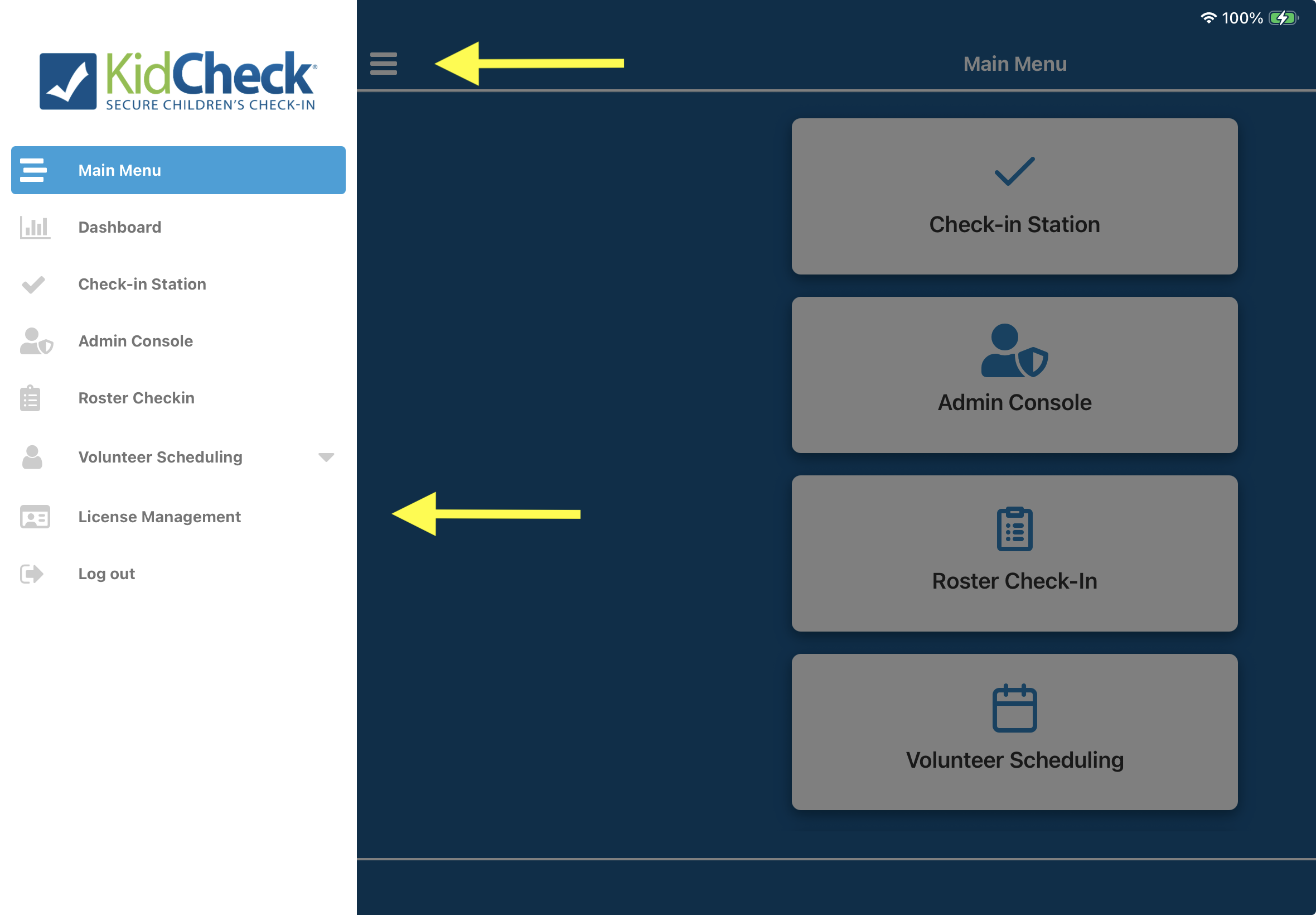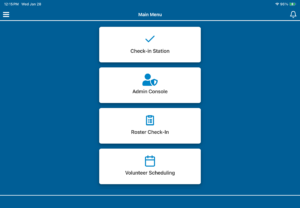 - Open the Admin App and select Check-In Station from the main menu.